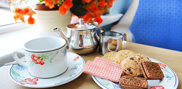 We also serve morning tea or coffee and biscuits, afternoon tea and cakes and a hot drink and biscuit at supper time. Residents are able to invite guests to meals if they wish. Cold drinks are available all day.